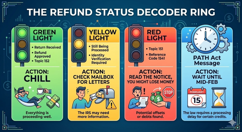 You will likely see a generic message about the PATH Act or “processing.” Your return isn’t broken. It’s just in a “time out” until the calendar hits February 15th. No amount of refreshing the page will change this.
